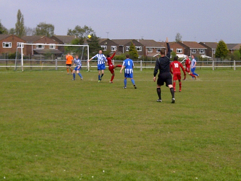 I made the short trip to Lower Road, Hullbridge to watch their final league match of the season on a nice warm bank holiday Monday. Hullbridge begain well but found themselves behind after 11 minutes when Bari's Adam Hunt got through and lobbed the ball over the onrushing Bobby Mason in the home goal. Hullbridge equalised on 26 minutes through Tom Woolfe with a good finish from the edge of the area after the ball broke to him. Bari re took the lead when the unfortunate Connor Rudd turned a cross in at his nearpost for an own goal. Hullbridge created some very good second half chances but could not score until the 83rd minute when the loose ball broke to Rob Hodgson around 12 yards out and he smashed into the bottom corner. Both teams then went for a winner but had to settle for a very entertaining 2-2 draw.
